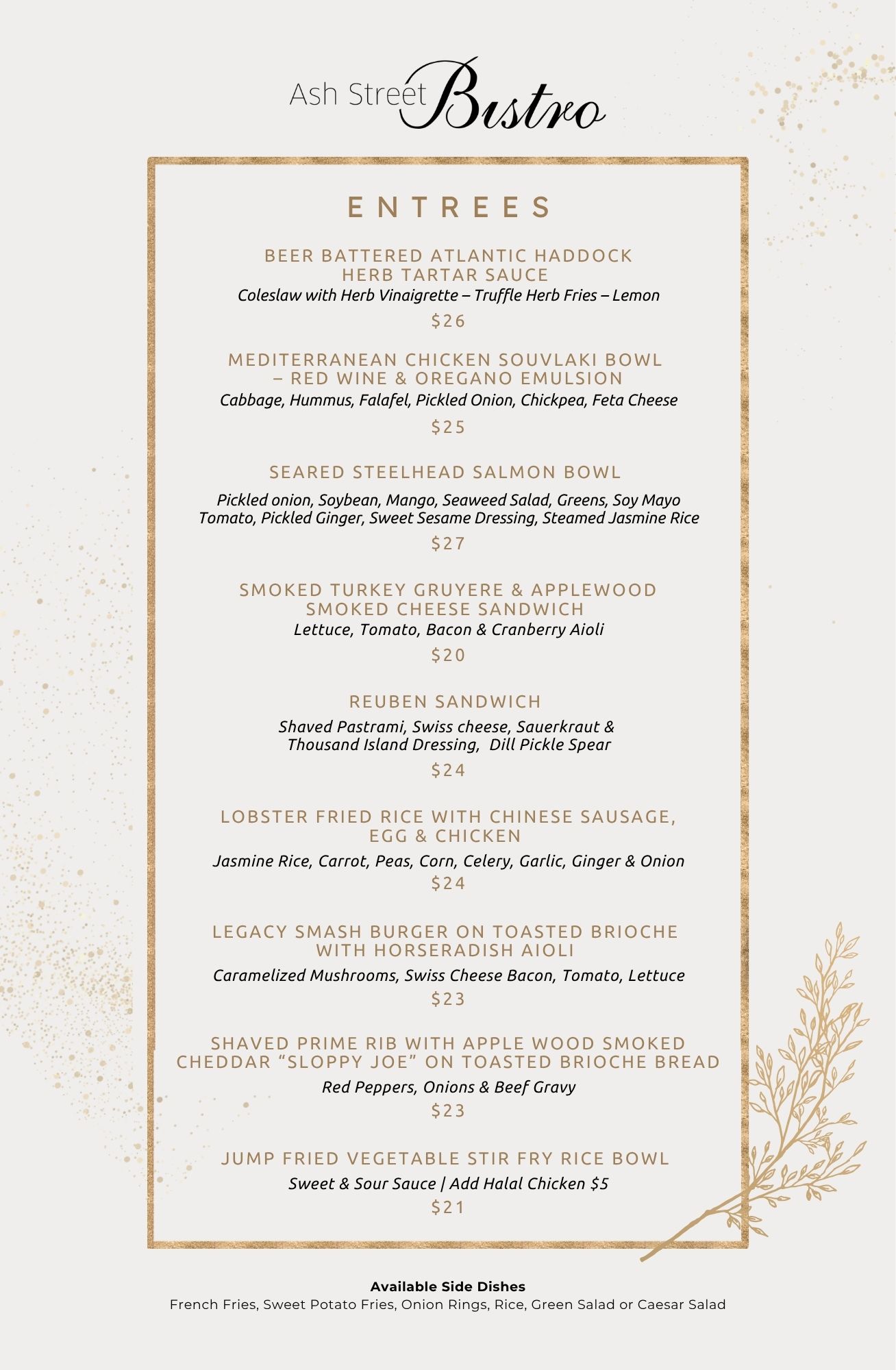 Lunch Menu in Ash Street Bistro - April 2026
